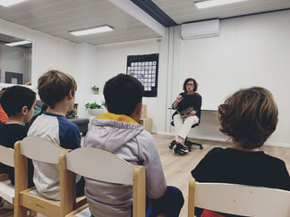 En la sessió de presentació, la Carme ha obert les portes d'aquest món amb la lectura d'Ulisses i Casimir, una història d'un gat i un petit ratolí que per casualitat descobreix la lectura, una nova afició que el salvarà de les urpes del seu enemic.
