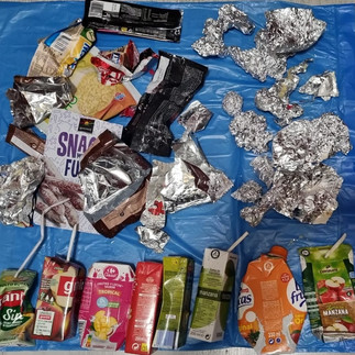 Després d'agrupar tots els residus recollits, us mostrem el que hem generat en 1 berenar (horari acollida tarda) + 1 esmorzar (tots els cursos de l'escola):